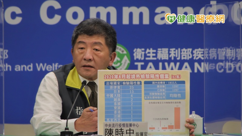 中央疫情指揮中心提到,在菲律賓檢驗陽性人數25名,其中18位第二次採檢為陰性,另7位沒有後續聯繫;日本有15名,其中一名日籍在台讀書學生返國檢驗陽性,後續自費血清抗體為陰性。至於日本7月29日之後,機場採檢改抗原檢測,日方認為過濾較有效率,相對偽陽性高,誤差較大。
